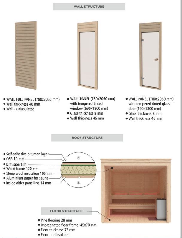 restliche Wandelemente sind massive Holzelemente (Kiefer) (5 - 11 Wandelemte)