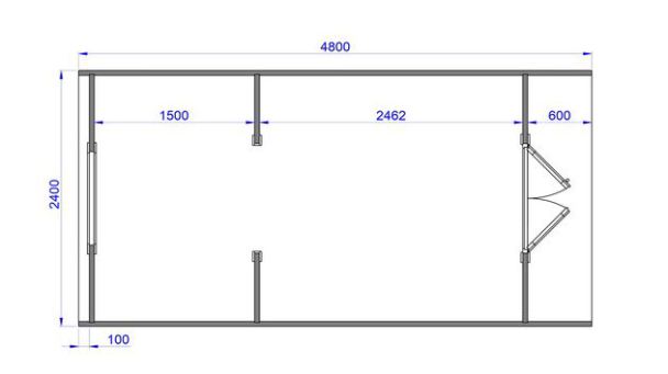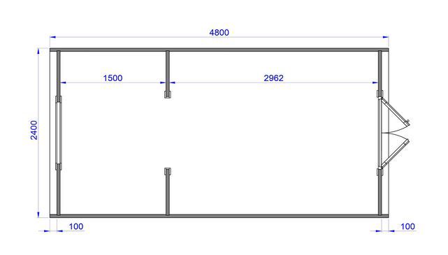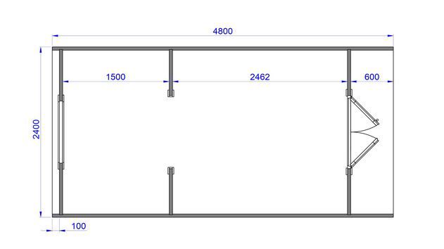 4,8 m x 2,4 m, 2 Räume, 8,8 m², mit 0,6 m Terrasse